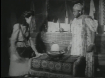 Later that day, Gertie, having been spooked by bad omens since her arrival on the island, goes to a fortune teller, an old woman named Old Hager. The old woman looks into her crystal ball and sees Gertie’s misdeeds and has a vision of a man coming after her. However, neither the medium’s predictions nor Mr. Christian’s best efforts to have the Diamond Palace shut down prevent Gertie from taking the stage and performing her striptease.