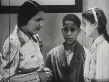 According to a May 1938 New York Times article, the film was “withdrawn from circulation” two days after its premiere at the RKO Regent theater in New York. The decision to withdraw the picture was the result of an unfavorable audience reaction to the film and a protest outside the theater. The article quoted Beatrice Godloe, head of the Young Communist Committee, which organized the picket, as saying that the film “slandered Negroes, holding them up to ridicule, playing light-skinned Negroes against their darker brothers.” The film was eventually re-cut and the following scenes were removed from the print: The opening scene between the stranger and Mrs. Saunders in which the dialogue centers on “Naomi’s” skin color; a portion of the scene in which “Naomi’s” teacher says “we’re all God’s children” and Naomi responds “[God] didn’t make the black ones”; a flashback scene in which Mrs. Cushinberry and her alleged paramour profess their love for each other; and a brief sequence at the end showing Naomi with a white husband, who asks her why she has become troubled after having peered into a house with “two Colored people and a boy.”