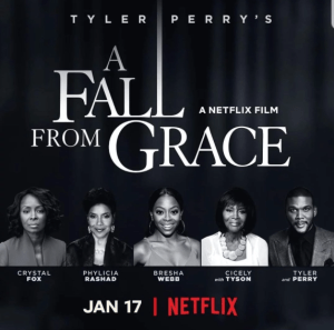 Story: Tyler Perry is teaming up with Netflix for a new thriller about a woman whose world is shattered by secrets. On 11/22/19, the writer-director-producer announced on Twitter, that his upcoming film, A Fall from Grace will begin streaming on the platform on Jan. 17. Netflix’s Strong Black Lead account also shared the news in a tweet saying the drama will be centered around a divorced woman who feels restored by a new romance, secrets soon start to erode her short-lived joy. Source: Deadline. Poster Source: Collider.com.