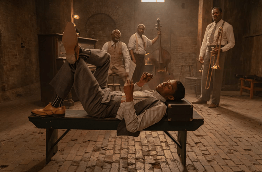 Story: Tensions and temperatures rise over the course of an afternoon recording session in 1920s Chicago as a band of musicians await trailblazing performer, the legendary “Mother of the Blues,” Ma Rainey (Viola Davis). Late to the session, the fearless, fiery Ma engages in a battle of wills with her white manager and producer over control of her music. As the band waits in the studio’s claustrophobic rehearsal room, ambitious trumpeter Levee (Chadwick Boseman) – who has an eye for Ma’s girlfriend and is determined to stake his own claim on the music industry – spurs his fellow musicians into an eruption of stories, truths, and lies that will forever change the course of their lives. Adapted from August Wilson’s play.