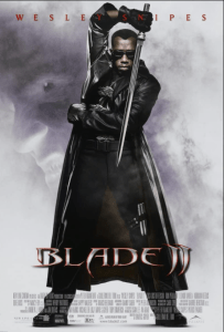 Synopsis: Sequel to the 1998 blockbuster, this film follows the human-vampire hybrid Blade in his continuing effort to protect humans from vampires, finding himself in a fierce battle against a group of mutant vampires who seek to commit global genocide of both the vampire and human races.