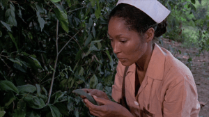 In the Philippines during World War II, nurses Lena Arruza and Francisca gather medicinal herbs in the jungle. Inside a cave, Movini, a firebrand cobra bearing a red triangle on its chest, bites Lena, who collapses, the red triangle appearing on her neck and her face becoming mask-like. When she regains consciousness it is as if she has never been bitten, and she carries the cobra outside, crooning to it. There, she finds Francisca, who has been raped and shot by a Japanese soldier. With the snake’s venom, Lena heals her friend instantly.