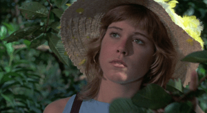 Although he chops her snake body into five pieces, she rejuvenates as five snakes and kills him. As his body falls into the altar pyre, the cave bursts into flames. Duff flees into the jungle, followed by Lena’s five snake entities. Just then, Joanna returns to the jungle and is soon surrounded by the five Lenas. Upon hearing her scream, Duff, deteriorating rapidly, entreats Lena to take him instead of Joanna. Joanna wants to stay to help him, but he insists she leave, then submits to Lena’s bite. As he awakens, young and healthy, he strokes Lena.