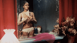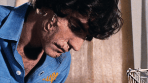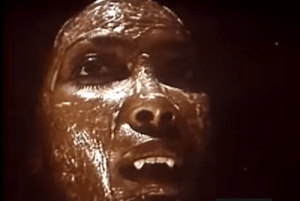 Afterward, he realizes that he is rapidly growing old and has been infected by the act of making love, but she informs him that Movini’s venom counteracts the aging process, keeping her young for decades, and that there are a few drops left in the house. After injecting Duff, instantly restoring his youth, Lena tells him he must retrieve the venom that Joanna has stolen. They go to the city, where Duff, again aging, sneaks into Joanna’s lab. When he places the venom vial on the counter, the caged monkey spills it, and Duff is forced to flee as he hears Joanna entering. Meanwhile, Lena is slowly transforming into a snake, a triangle appearing on her neck and her skin turning to scales. She immediately targets a local man with whom to make love, knowing this will restore her youth temporarily, although it leaves the man instantly withered and old.