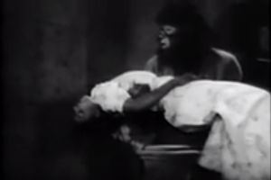 The Black plantation overseer, LeStrange (played by white actor Sheldon Leonard) is in love with Klili but she only wants Adam. With the help of a voodoo leader, Klili visits a graveyard and resurrects two zombies to abduct Eve and offer her up for sacrifice. As Klili and her followers prepare Eve for the ceremony, LeStrange tries to stop her, but she shoots him. Though Injured, LeStrange steals Klili’s love ouanga and sets it on fire. Klili runs off into the jungle, where he follows her and strangles her to death.