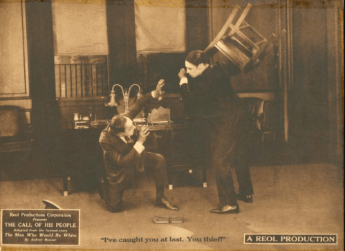 As Stuart is about to take the contracts from the company safe, Graves attacks him, and during their struggle, retrieves the contracts. After Graves runs off, Nelson returns to the office, and Stuart mistakes him for his attacker, then accuses him of the theft. The next morning, as Stuart is telling their boss, Lionel Weathering, that Nelson stole the contracts, Elinor arrives with the contracts and a letter from Graves, which proves Stuart’s guilt. Nelson, extremely grateful for Elinor and Graves’ loyalty, finally informs his boss that he has been passing for white. Weathering assures Nelson that it is the quality and not the color of a man that counts, and Nelson asks Elinor for her hand in marriage, once again proud to be black.